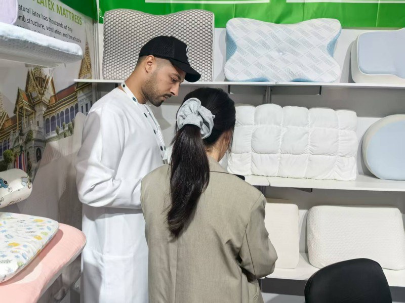 By hierdie Dubai-slaapuitstalling is ons geëerd om ons slaapgefokusde kussings aan besoekers van regoor die wêreld te wys. Ons is toegewyd aan die aanbieding van twee van die topverkoper kussings op die mark: dienatuurlike latex kussingen die moderne slim materiaalgeheue skuim kussing. Die vinnige terugslag en anti-allergie-eienskappe van latex word hoogs bevoordeel deur latex-entoesiaste. Intussen kan die uiteindelike pas van geheueskuim diep slaap verskaf. Ons in-diepte kommunikasie met kliënte op die perseel het ons laat voel hoe hulle na kussings soek. Ons glo vas dat die verskaffing van persoonlike keuses vir verskillende slaapgewoontes die sleutel tot kwaliteit slaap is.
